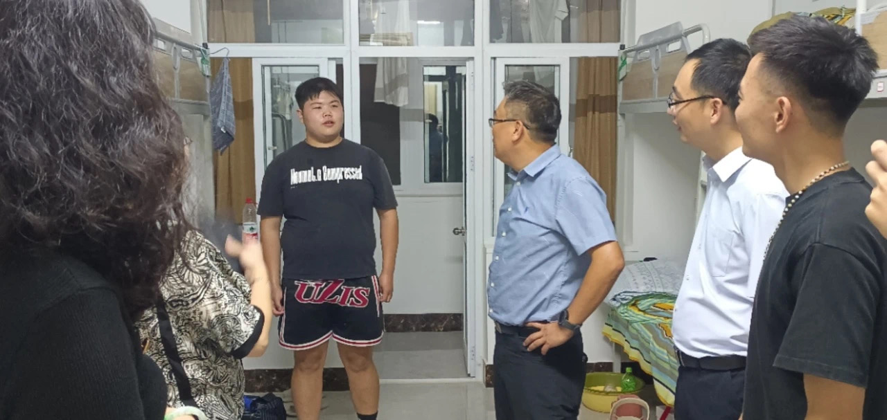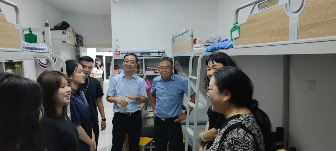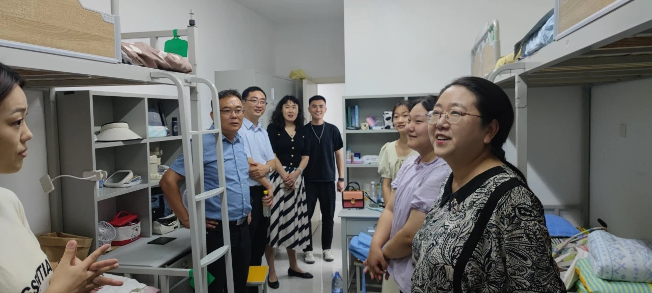 党委书记李建新、院长王静怡、副书记孙建华、副院长董博超及辅导员朴博文走访了新生宿舍,领导老师亲切慰问同学们是否适应校园生活,并叮嘱同学们要增强安全意识,预防诈骗。