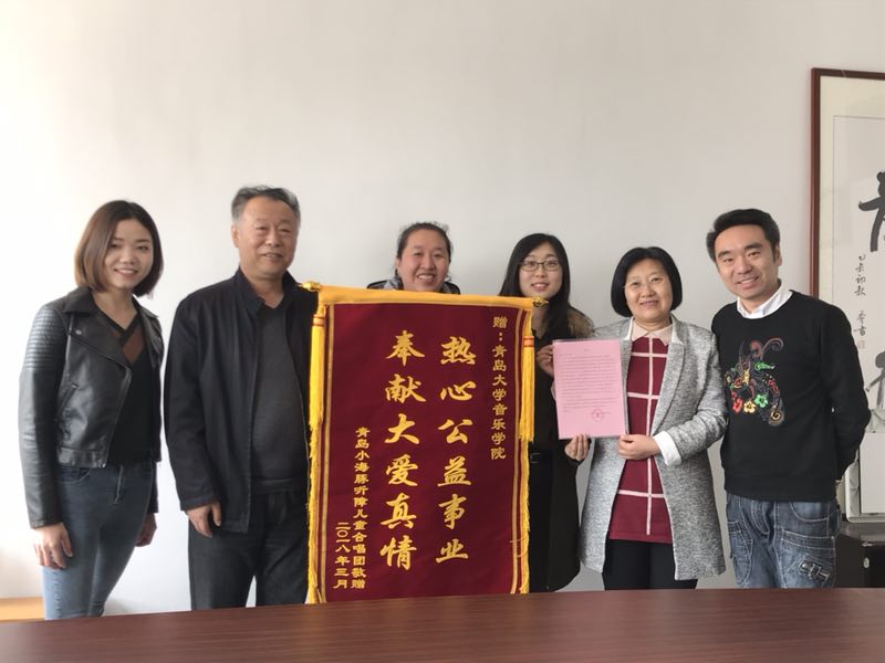 青岛小海豚听障儿童合唱团是青岛地区听障儿童家长自发组织成立儿童合唱团体,目前有团员二十余人,这些孩子均接受了人工耳蜗治疗。为加强孩子们语言和音乐康复训练,自去年10月起,刘宇博老师和9名声乐专业学生愉快地接受了邀请,担任合唱团辅导老师。他们牺牲个人大量休息时间,每周周日义务授课一个半小时。通过培训,绝大多数孩子能够熟练准确的完成5首歌曲的演唱。家长们普遍反应,经过训练,孩子们更加自信、更加开朗、更愿意与人交流,家长们信心也更坚定。
