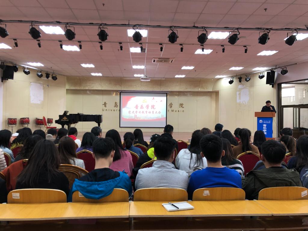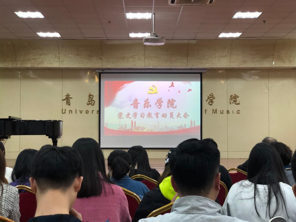 在德雅楼103排练厅举行党史学习教育动员大会。全院师生党员、入党积极分子80余人参会。动员大会由院党委书记姜世安主持。