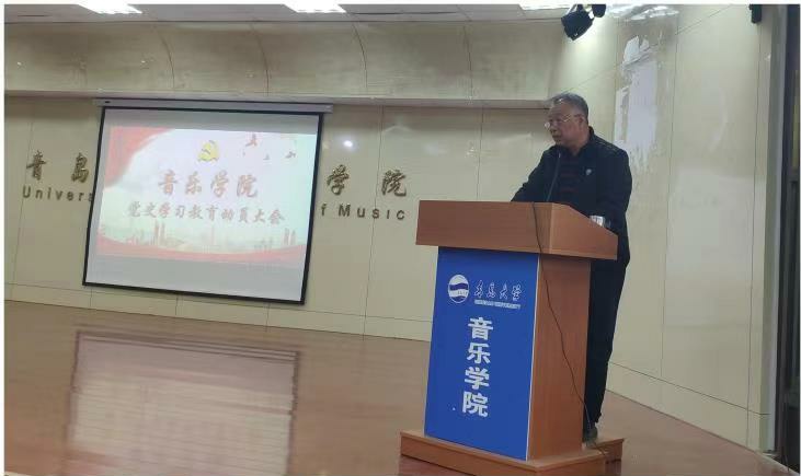 院党委副书记司现鹏传达了关于习近平总书记在中央党史学习教育动员大会上所做重要讲话精神、校党委书记胡金焱在青岛大学党史学习教育动员大会上讲话精神。