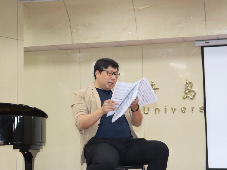合唱,作为一种极具感染力的音乐形式,其音色的多样性如同璀璨的星空,令人陶醉其中。吴可畏教授通过《祖国颂》、《天路》两首合唱曲目进行合唱指导,详细的向同学们讲解如何进行合唱提高合唱曲目的美感。