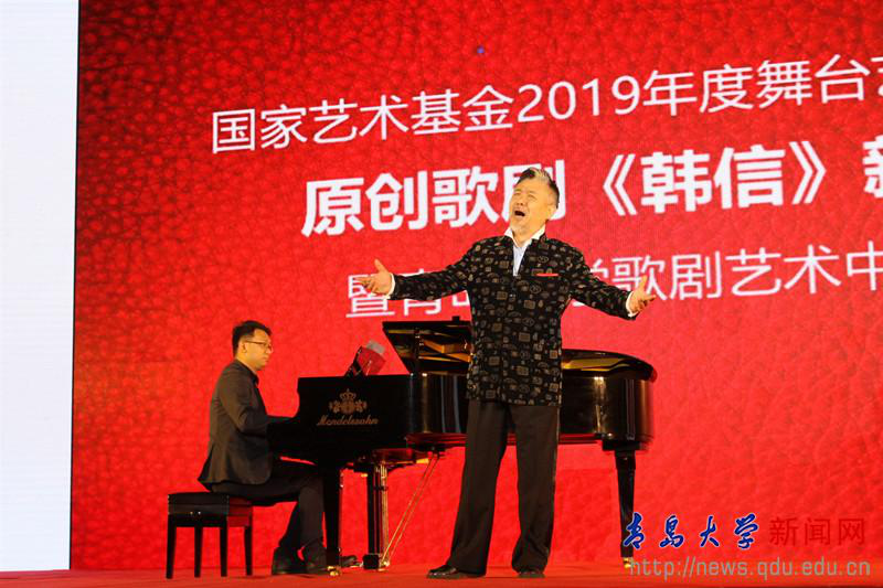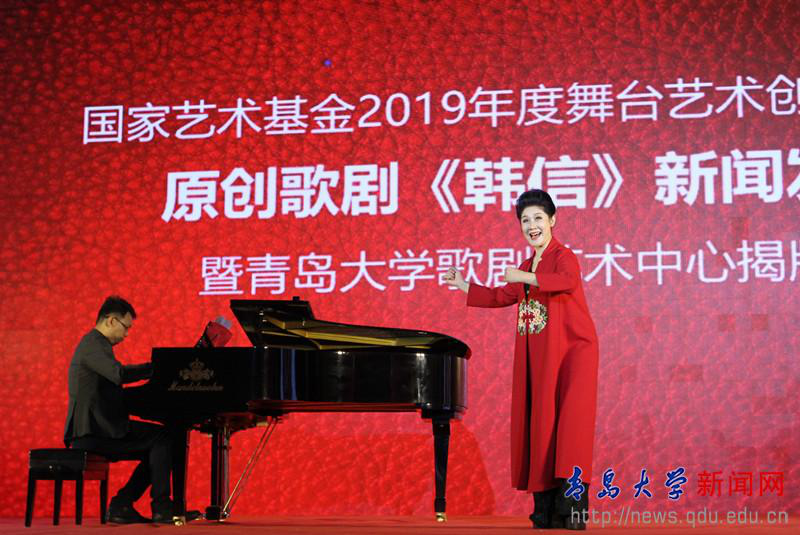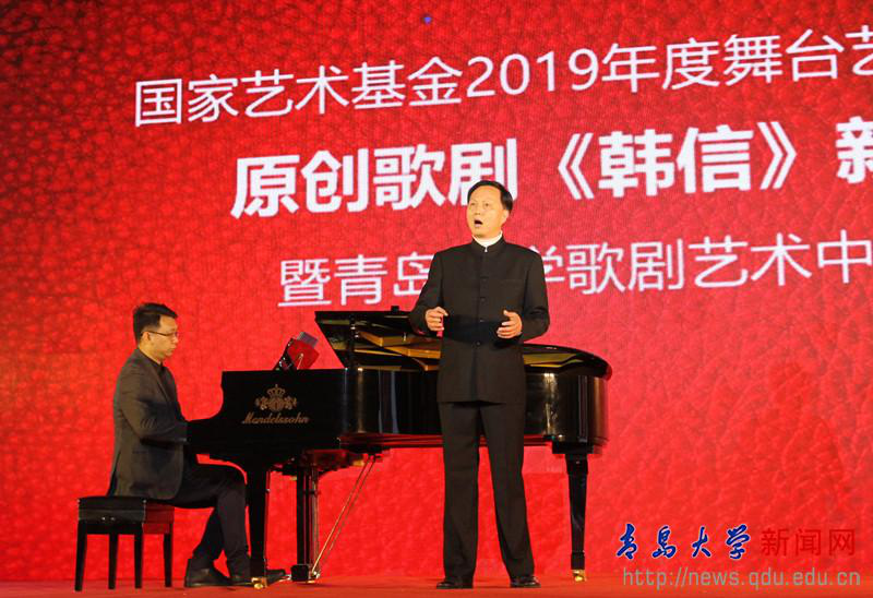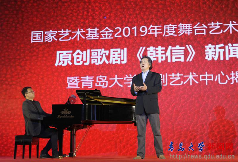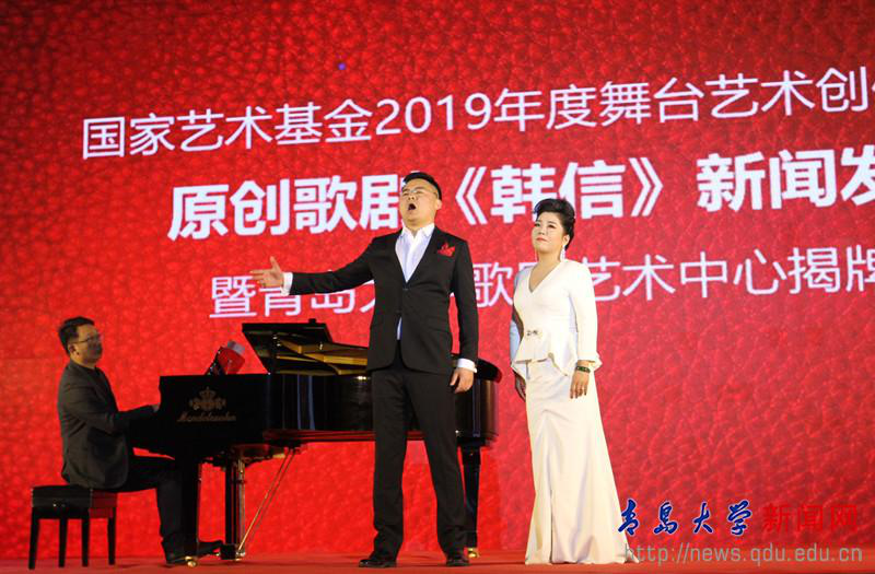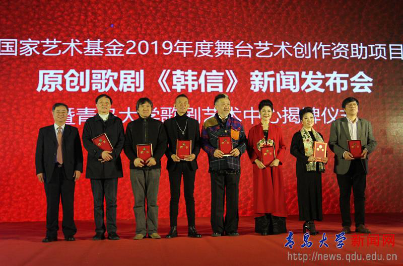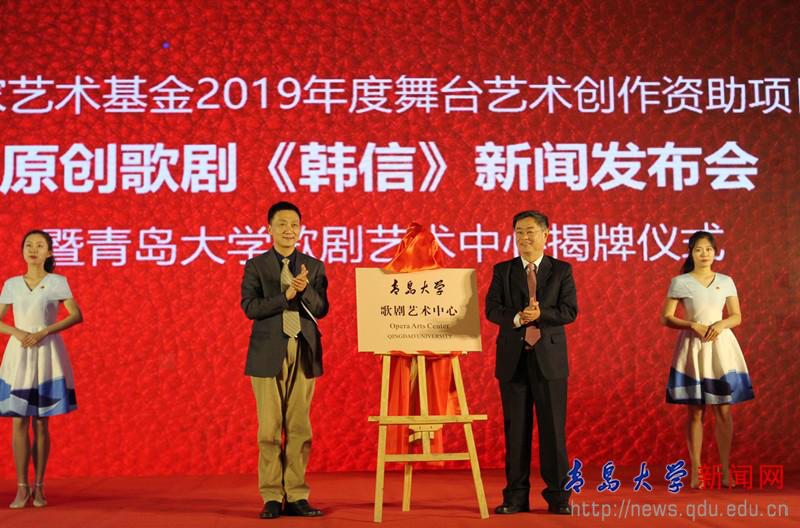 4月28日下午,国家艺术基金2019年度舞台艺术创作资助项目原创歌剧《韩信》新闻发布会暨青岛大学歌剧艺术中心揭牌仪式,在我校剧院举行。