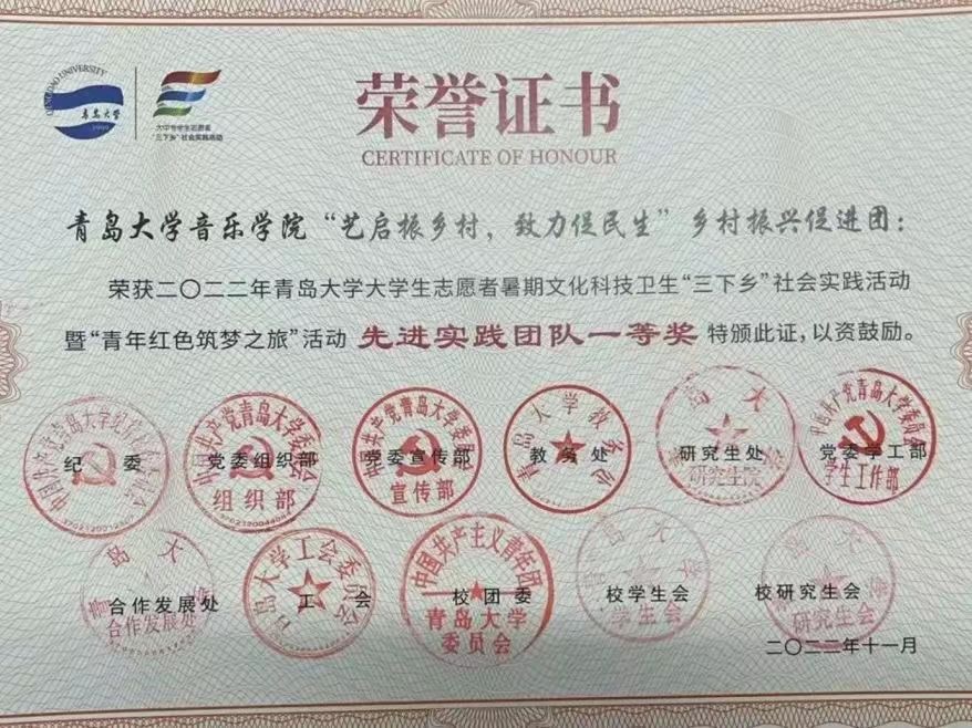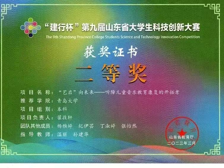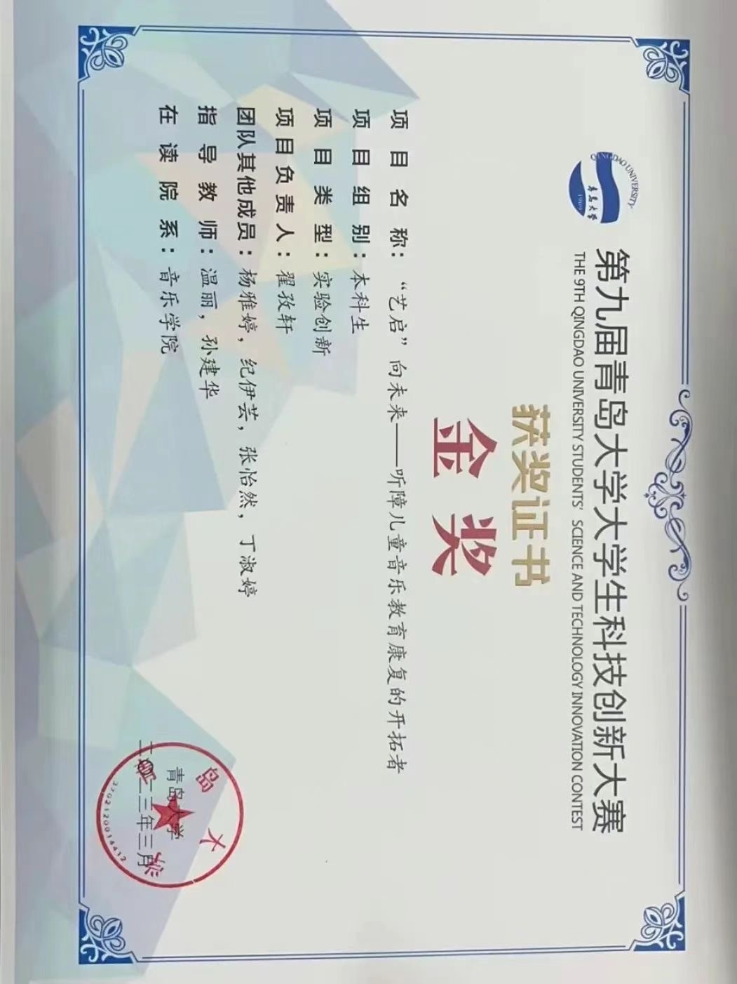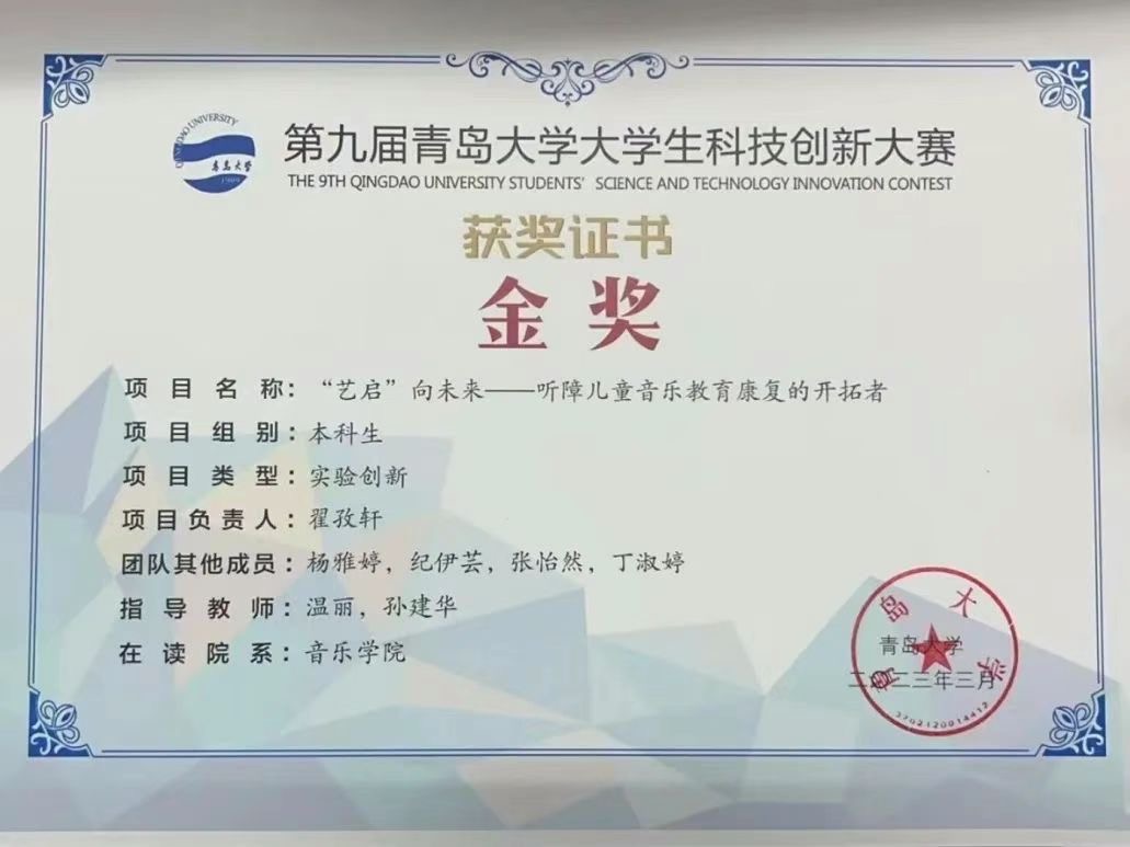 “艺启”志愿者协会曾去往青岛市枯桃小 学、莱西小剑桥幼儿园、临沂市临沭县的三个贫困村、临沂市红花镇中心幼儿园、 小百灵听力语言康复中心、三江特殊教育学校、小海豚听障儿童康复中心等多地, 荣获“大学生留守儿童音乐教育基地”荣誉称号。