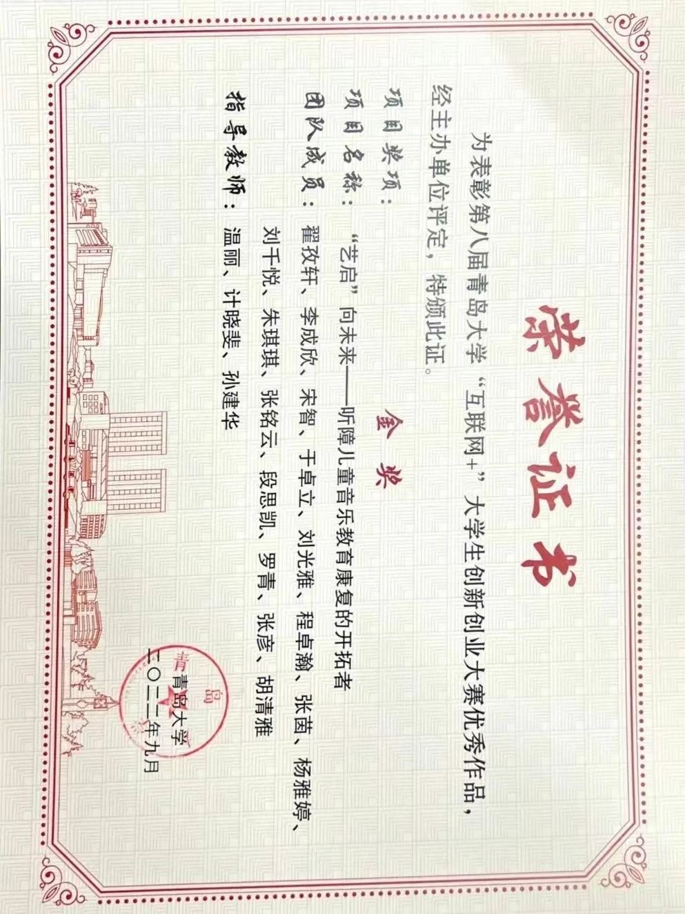 协会团队在志愿服务活动实践中,自主研发了一套“智能化听障儿童音乐康复教育平台”, 积极参加互联网+、挑战杯、科技创新等大赛,获校级特等奖1次、金奖3次、省级银奖3次、 省级三等奖1次。达到志愿者在实践中成长成才这一目标。