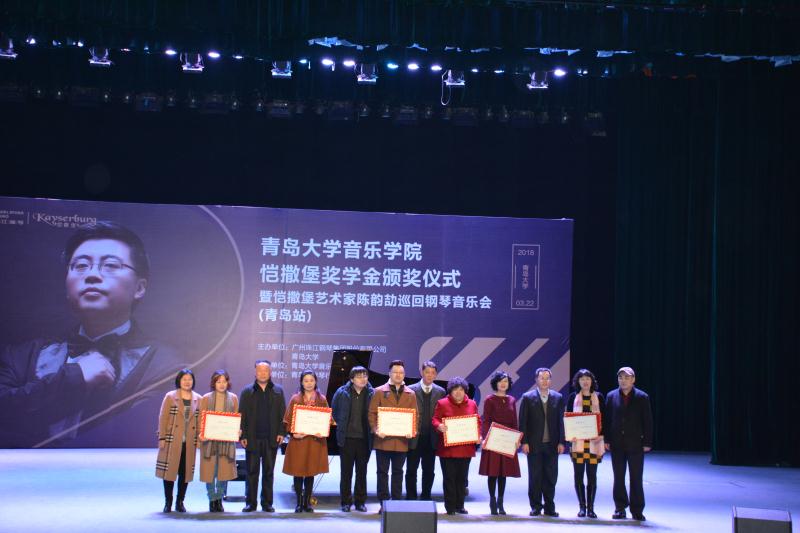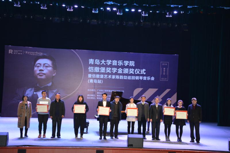 钢琴系、音乐教育系的老师苏勇生、杨佩胜、宋艺闻、王晓萌、董博超、陈晖获得优秀指导教师奖励。珠江钢琴集团代表营销总监袁海浪先生与我校代表共同给获奖师生现场颁发了奖金证书。