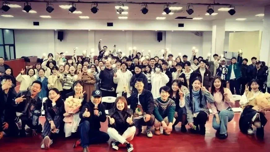 党委书记李建新、副书记孙建华、学工办主任迟晓波、团委书记温丽、辅导员朴博文以及100余名师生、校友观看演出。音乐会由青岛大学流行音乐通识选修课授课教师刘宇博、王锐主持。