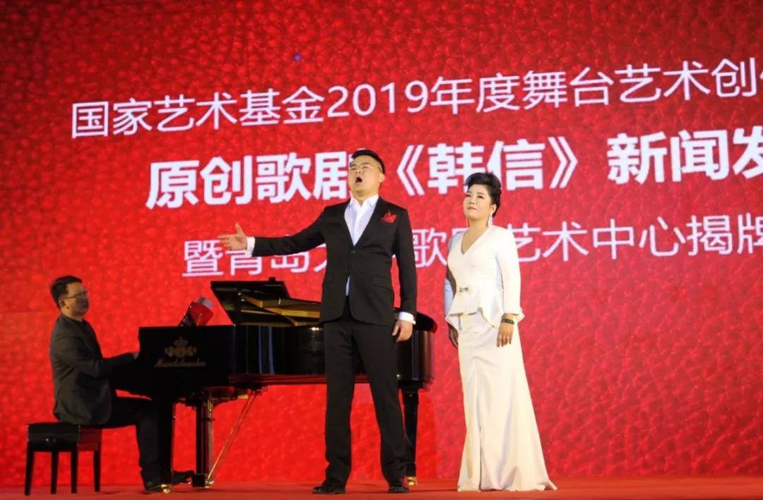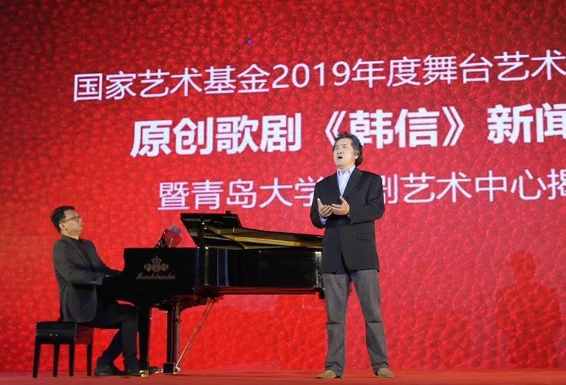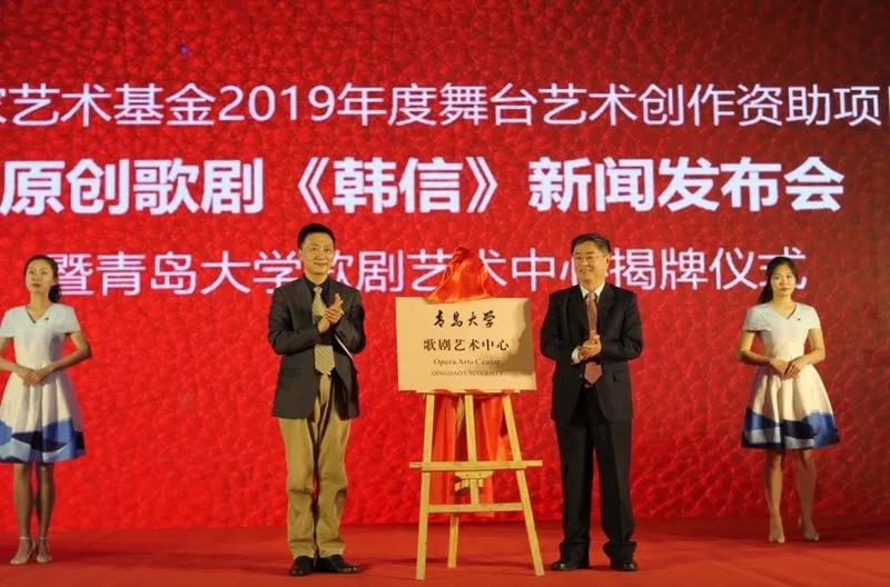 4月28日下午,国家艺术基金2019年度舞台艺术创作资助项目原创歌剧《韩信》新闻发布会暨青岛大学歌剧艺术中心揭牌仪式在我校剧院举行。