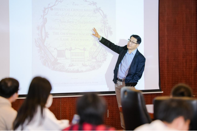 宫宏宇教授在《自东徂西——经由海上丝绸之路传至欧美的中国音乐》报告中,从“柳叶锦、耶稣会士与中国乐曲最初之西渐”“马戛尔尼使团与《茉莉花》之西传及流变”“八音盒、欧洲歌剧舞台上的中国”三个方面出发,细致入微地讲述了中国音乐是如何在海上丝绸之路这条古老的航线上传入异国他乡,并与当地音乐相互吸纳融合,从而形成了新的音乐艺术形式。此次报告论述了中国音乐在欧美地区交流传播的悠久历史,展现了音乐在海上丝绸之路的运行之上被赋予的丰厚底蕴,阐释了海上丝绸之路构建世界交通线路大网络,形成东西方文化交流重要纽带,推动文化交流与发展的深刻意义。