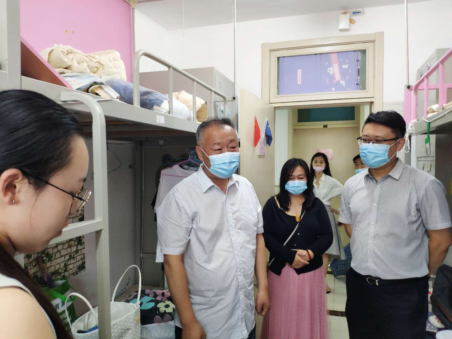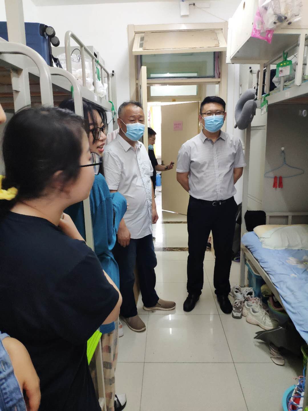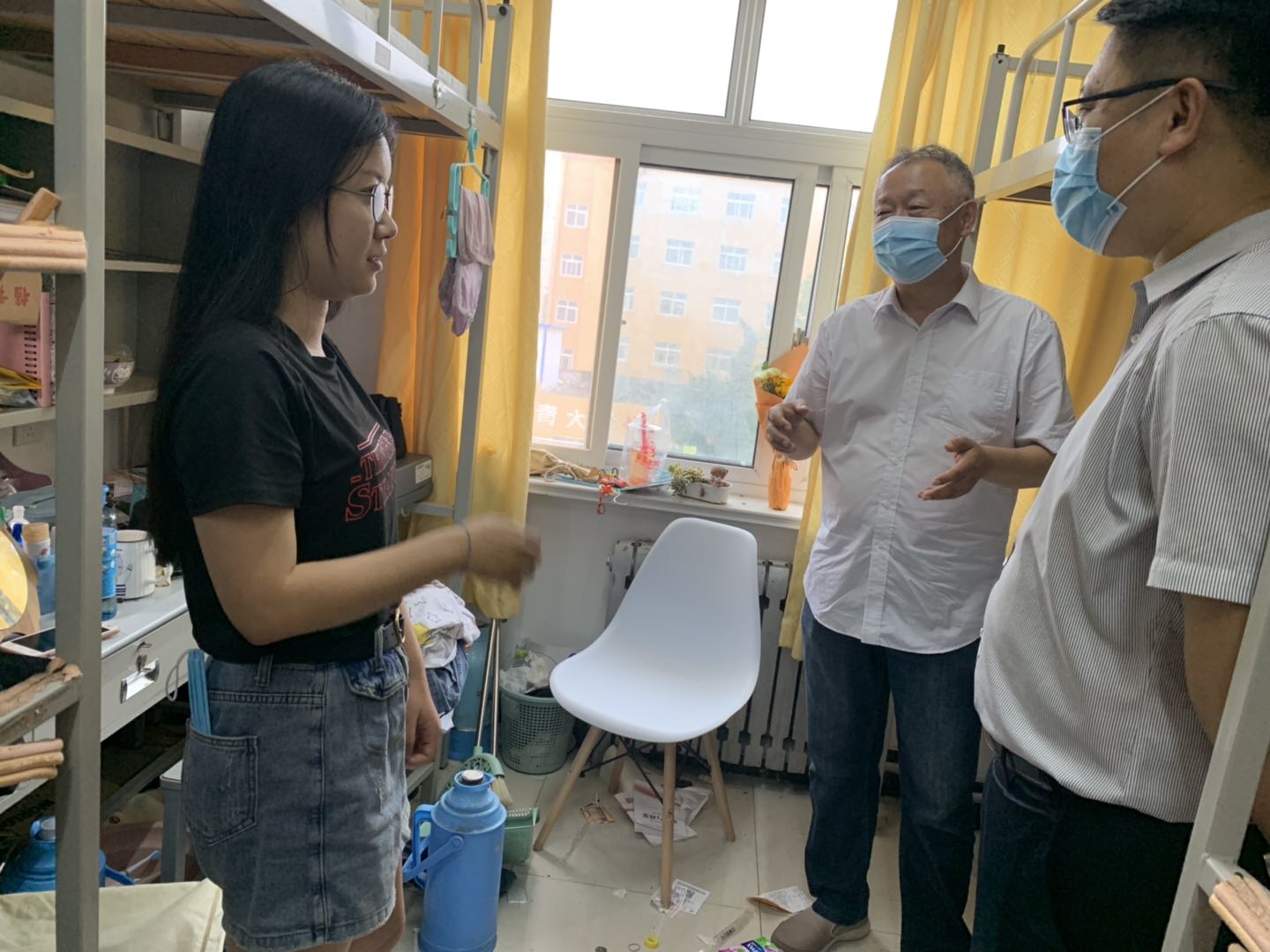 党委书记姜世安、党委副书记司现鹏,学工办主任迟晓波以及辅导员董洋,一起走访了毕业生宿舍,送别毕业班同学。
