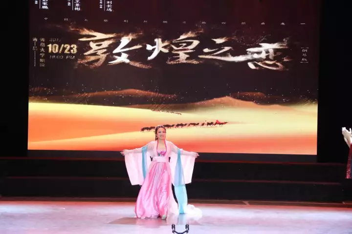师生编导参演的四幕大型历史民族歌剧《敦煌之恋》在剧院上演,校党委常委、副校长邵彬、李军与青岛市文联、音协、剧协,来自省内十余所高校的同行以及社会各界人士千余人一同观看了演出。