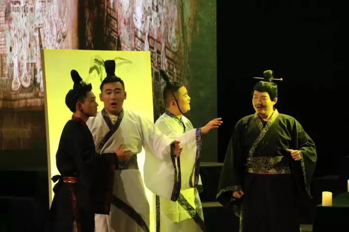 师生在北京国家大剧院首演第一、三幕,在海南省歌舞剧院复演之后,此次在我校大剧院四幕完整版的首演。值得一提的是,三场演出的音乐,尝试采用了不同的伴奏形式,有西洋管弦乐队版,中国民族乐队版,澳门赌场老虎机