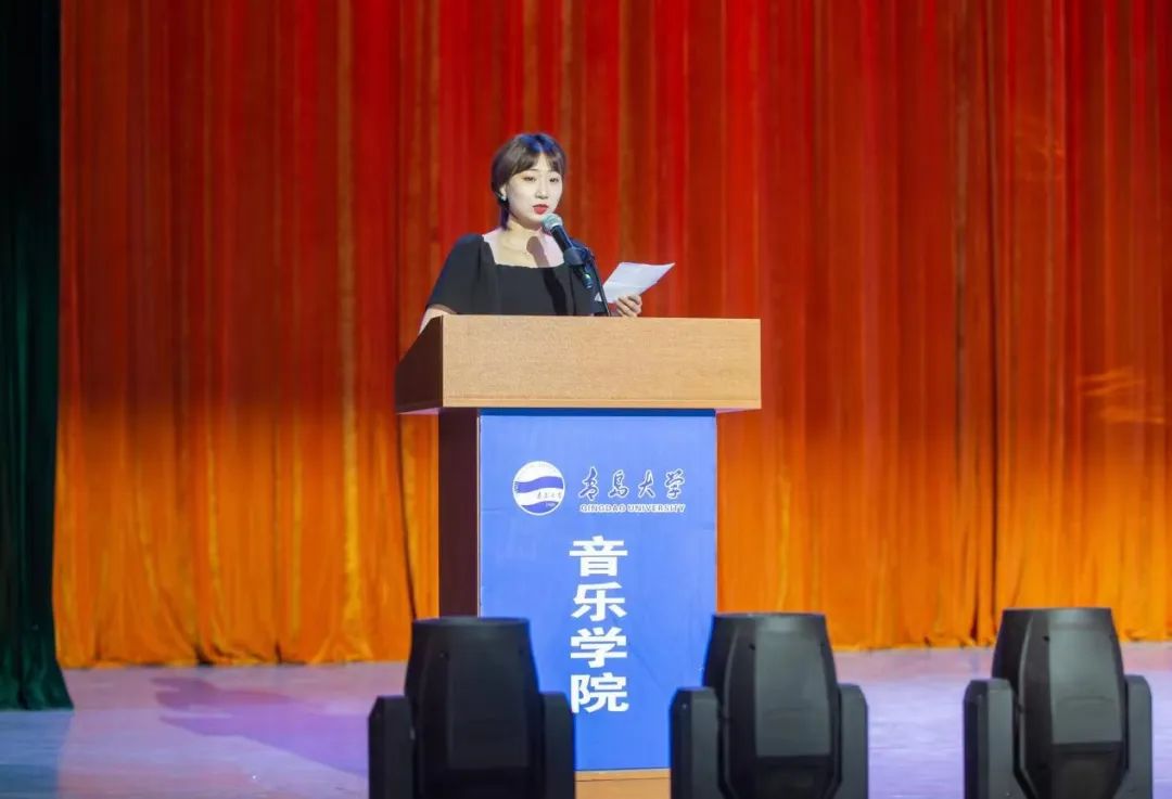 西洋管弦组一等奖获得者苏日娜同学代表参赛学生发言,她向关心和支持本次大赛的各位领导和老师表示感谢,她表示通过本次比赛自己增加了舞台经验,提高了专业水平。