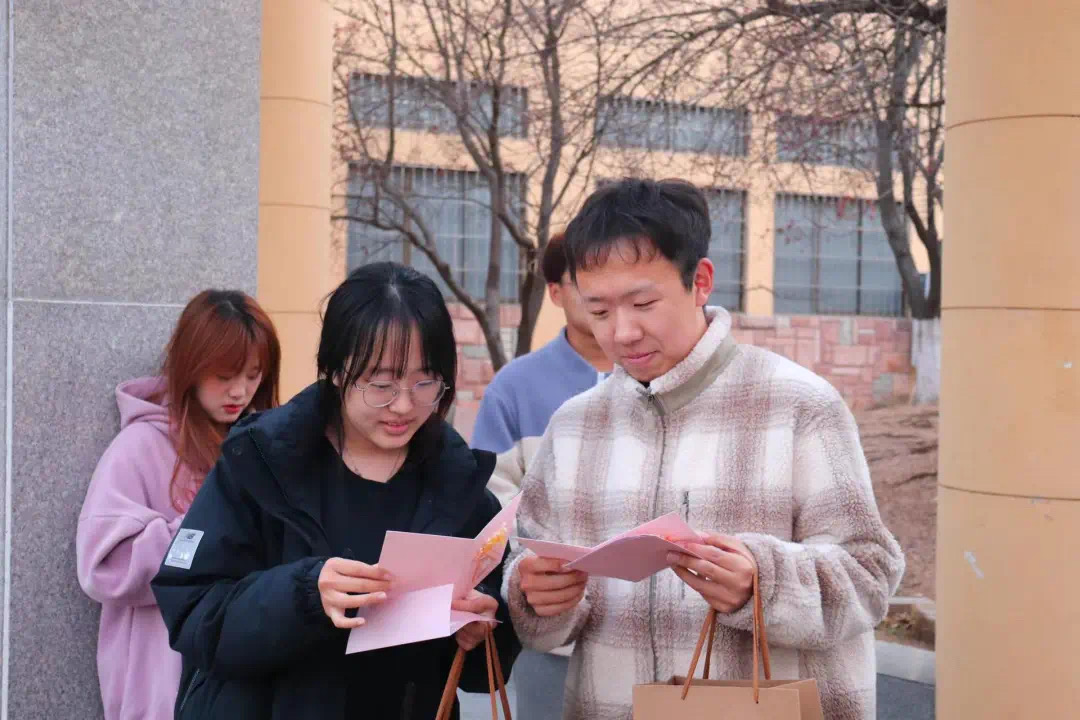 考研学子送上冬日的温暖,也给正处在紧张气氛里的他们进行加油打气。
