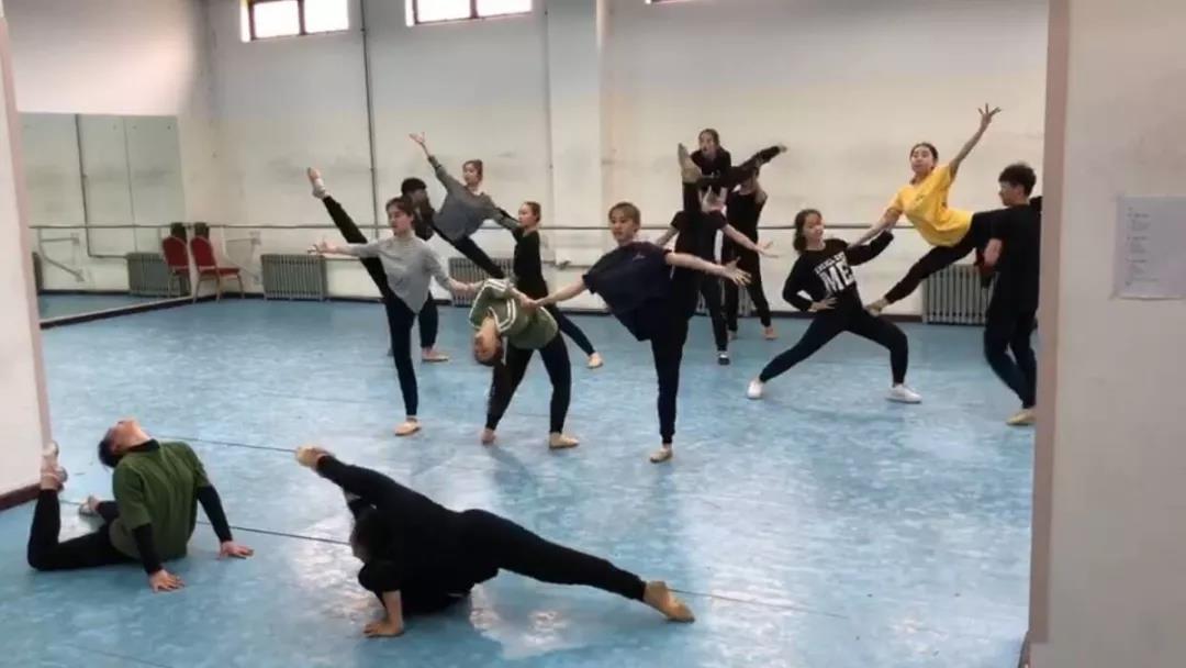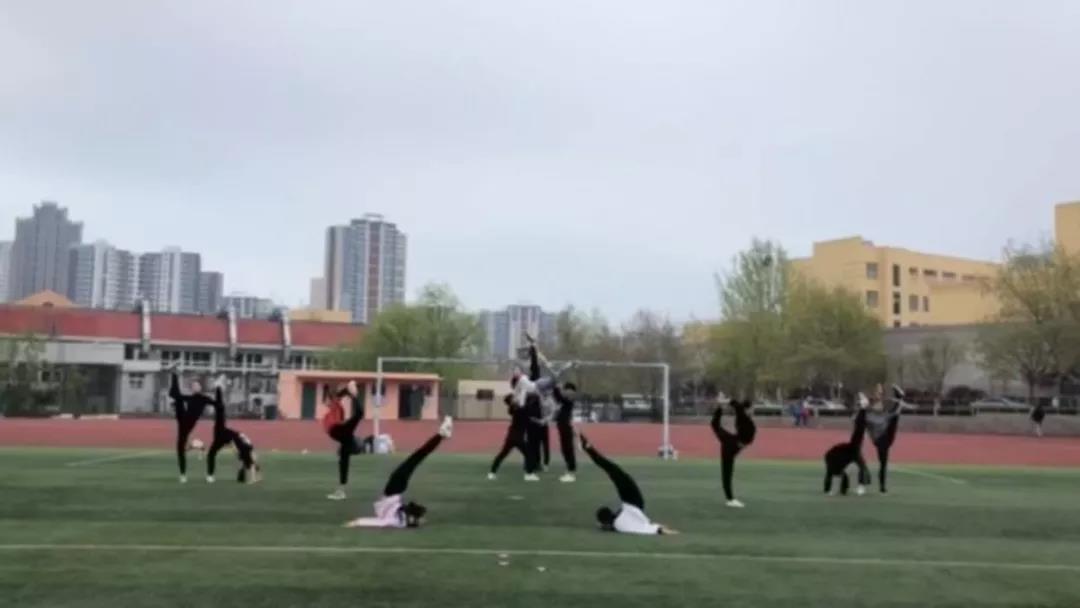 舞蹈系同学为了能够在本次健美操竞赛中取得较好的成绩,放弃了课外休息时间,坚持定期、定时、定点进行系统训练,不畏辛苦、勤奋苦练。