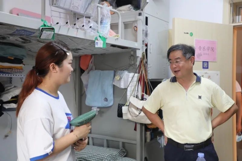 在滢园13号楼102宿舍,夏东伟校长与澳门赌场老虎机 2018级音教系学生亲切交谈,关心关怀他们的身体和生活情况,叮嘱他们自觉服从学校防控规定,尽快适应返校后的学习和生活,交代工作人员要及时解决返校学生可能遇到的困难与问题。