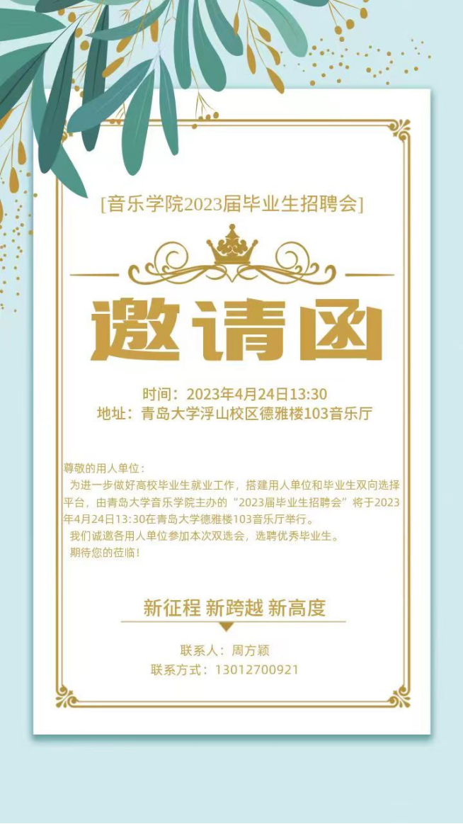 拟于4月24日举行毕业生专场招聘会,诚邀用人单位参加。