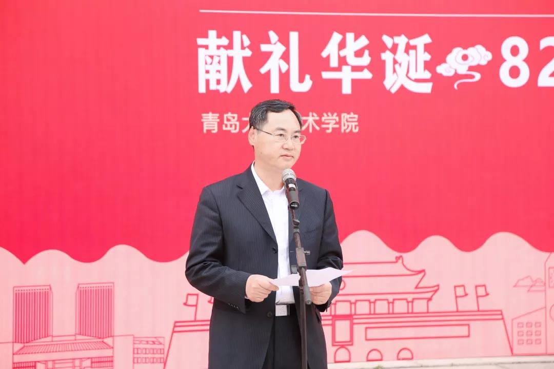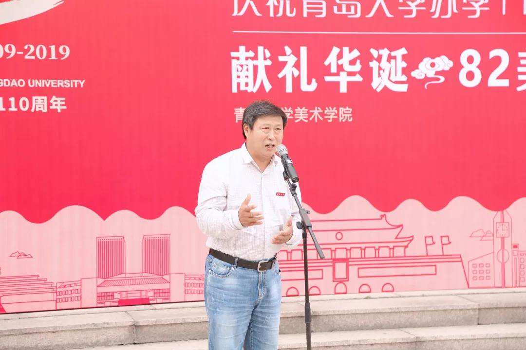 在德雅楼前举行了庆祝中华人民共和国成立70周年,庆祝青岛大学办学110周年,献礼华诞·82美术作品展开幕式。参加此次活动的有青岛大学党委常委、副校长李军,青岛大学美术澳门赌场老虎机