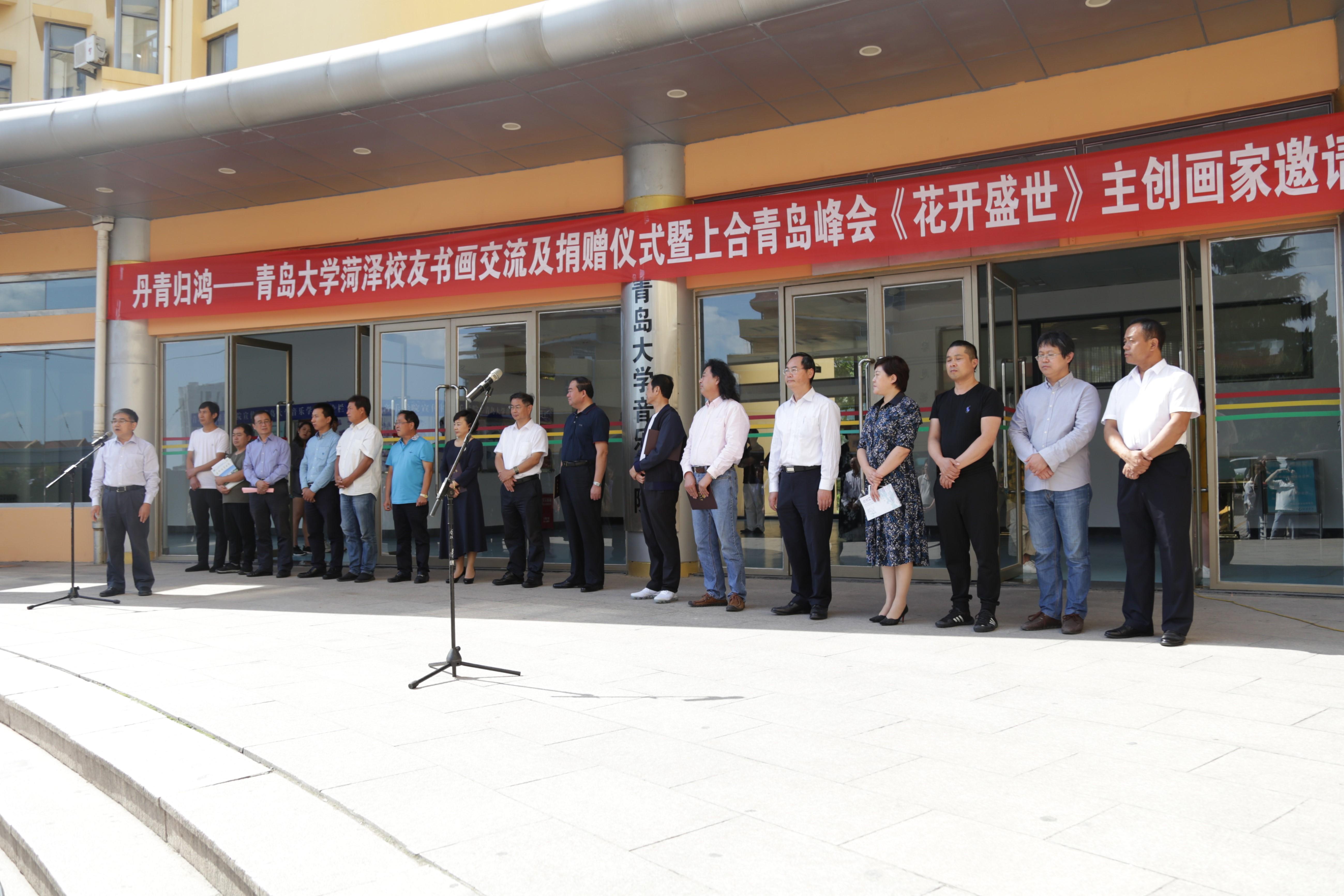 2018年9月26日上午10点丹青归鸿——青岛大学菏泽校友书画交流及捐赠仪式暨上合青岛峰会《花开盛世》主创人员邀请展开幕式在青岛大学中心校区德雅楼前举行。