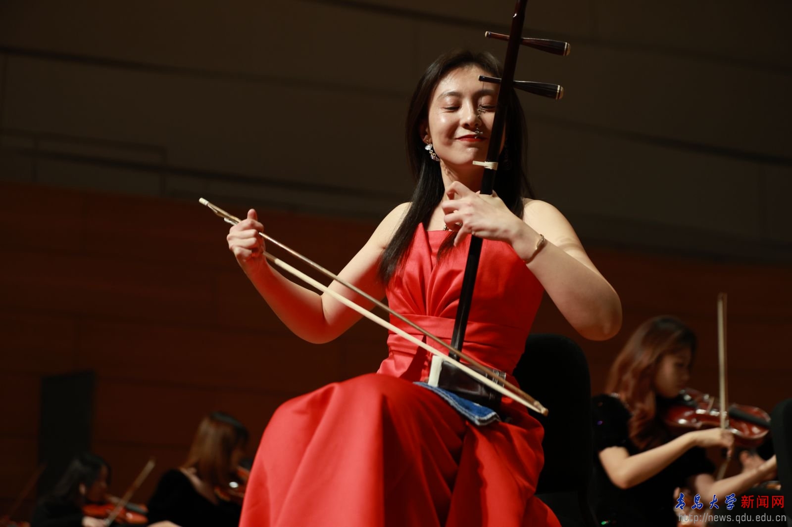 交响乐《北京喜讯到边寨》、古筝协奏曲《云裳诉》、交响乐《瑶族舞曲》、二胡独奏《战马奔腾》、交响乐《火把节》、中阮齐奏《丝路驼铃》等曲目让现场师生们领略到了不同民族的音乐魅力,感受中华文化的悠远长音。