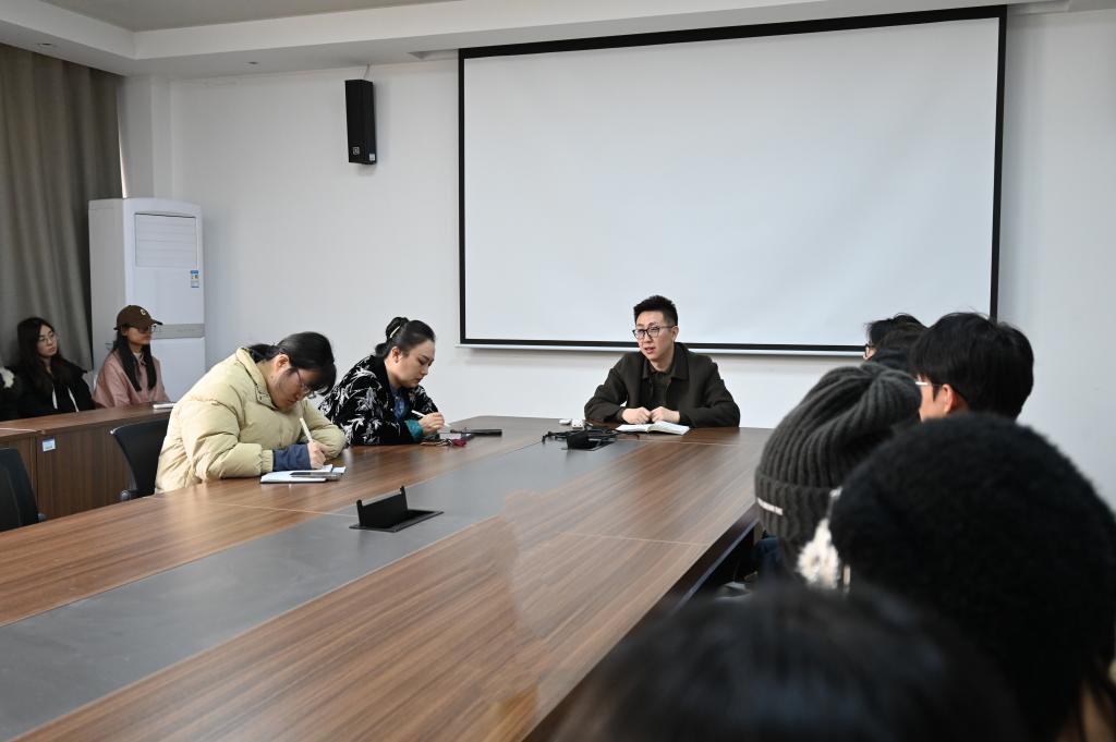 党委副书记郭瑾瑜主持会议,从事新闻宣传工作的部分老师和全体新媒体运营团队同学参加会议。