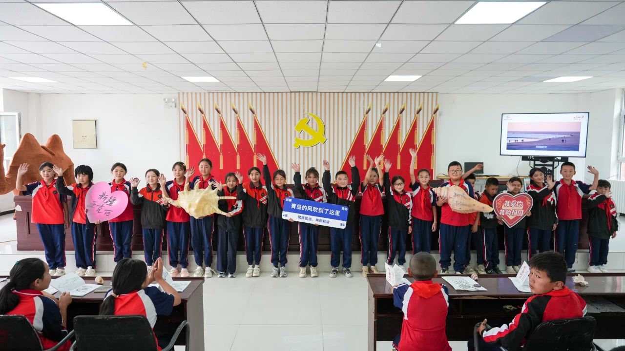在号称“国门小学”的塔什库尔干塔吉克自治县塔合曼乡寄宿制小学的民族交流活动中,多元文化的交融如春日融雪般自然而热烈。身着传统民族服饰的塔吉克族孩子们在校门口盛装迎接我们。来到教室,支教老师带着孩子们用普通话哼唱学习《大海啊故乡》,歌声里既有对远方海洋的向往,也有对家乡土地的眷恋。在分发海螺时,孩子们把海螺贴到耳边,教室里响起此起彼伏的惊呼声,“这个海螺可以听到大海的声音!”团队成员跨越千里带来的礼物,让大海的潮声在离海最远的地方,涌进最清澈的童心里。此外,团队和塔什库尔干塔吉克自治县教育局达成初步合作,为孩子们带来独特的美育推普课程。泥叫虎绘制环节中,孩子们小心翼翼地接过来自山东高密的泥坯,在支教老师的指导下,用鲜艳的色彩勾勒出虎纹,还兴奋地用刚学会的普通话分享:“我画的老虎有圆圆的眼睛!”海洋印章体验更是让孩子们雀跃,当印着海浪、贝壳的图案在纸上浮现时,他们争相描述着对“大海”的想象,塔吉克族孩子眼中的高原与实践团带来的海洋文化,在画笔与印章的碰撞中交融。这场跨越地域的交流,让不同的文化基因碰撞,在孩子们心中种下了理解与热爱的种子。