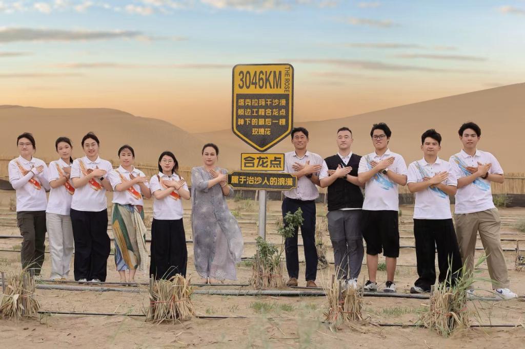 和田地区于田县地处塔克拉玛干沙漠南部,自然环境受塔克拉玛干沙漠影响较大,风沙天气较多。团队走进和田地区于田县,调研当地少数民族维吾尔族的普通话学习推广情况,参观了塔克拉玛干锁边工程。团队在“塔克拉玛干沙漠锁边工程合龙点”旁学习了解了当地少数民族同胞在防风治沙方面的努力,感受少数民族同胞治沙人一代又一代对祖国、对家乡的爱护。他们用实际行动诠释了“绿水青山就是金山银山”的理念,共同构建祖国的绿色生态屏障。