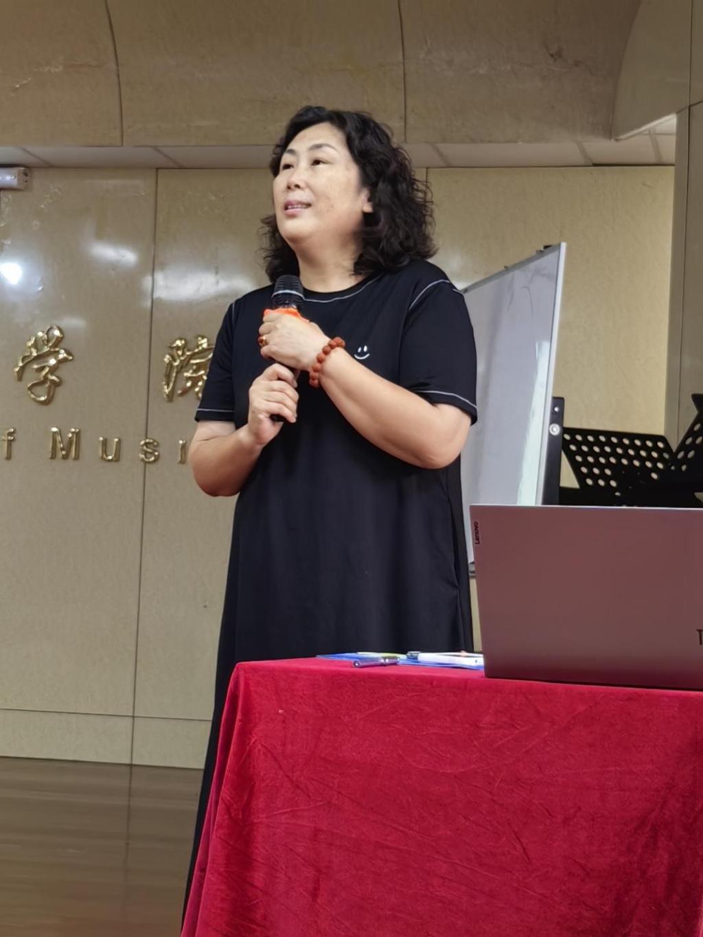 孙红根据同学们的学习实际,首先解读了《2022年版义务教育艺术课程标准》的有关内容,对艺术课程三大课程理念(坚持以美育人、重视艺术体验、突出课程综合)、四大核心素养(审美感知、艺术表现、创意实践、文化理解)、五大课程性质(审美性、情感性、实践性、创造性、人文性)、四类艺术实践(欣赏、表现、创造、联系)等内容进行了详细的讲解。
