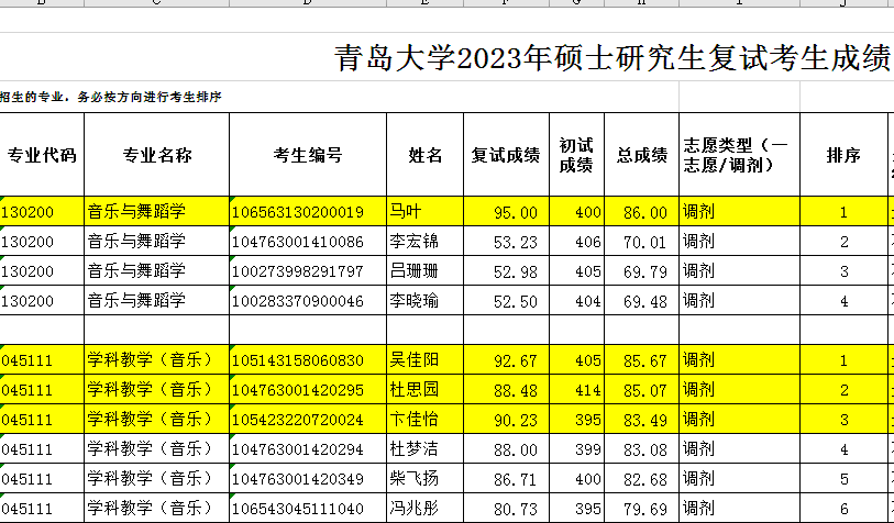 2023青岛大学音乐澳门赌场老虎机 研究生招生调剂复试成绩公布