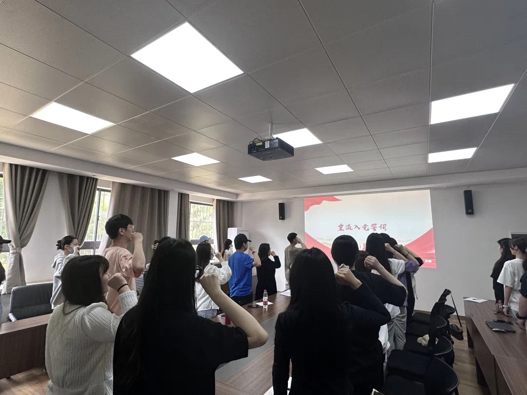 会议伊始,全体毕业生党员起立,举起右手,紧握右拳,面向党旗庄严宣誓,在铮铮誓言中重温入党初心,坚定理想信念,牢记职责使命。并勉励毕业生党员时刻牢记入党誓词,加以谨记,以严格的标准来要求自己。充分发挥党员的模范带头作用,坚定理想信念,牢记觉员责任,树立爱岗敬业和开拓创新的精神,在社会主义现代化建设的实践中建功立业,为母校争光、更为自己争光。