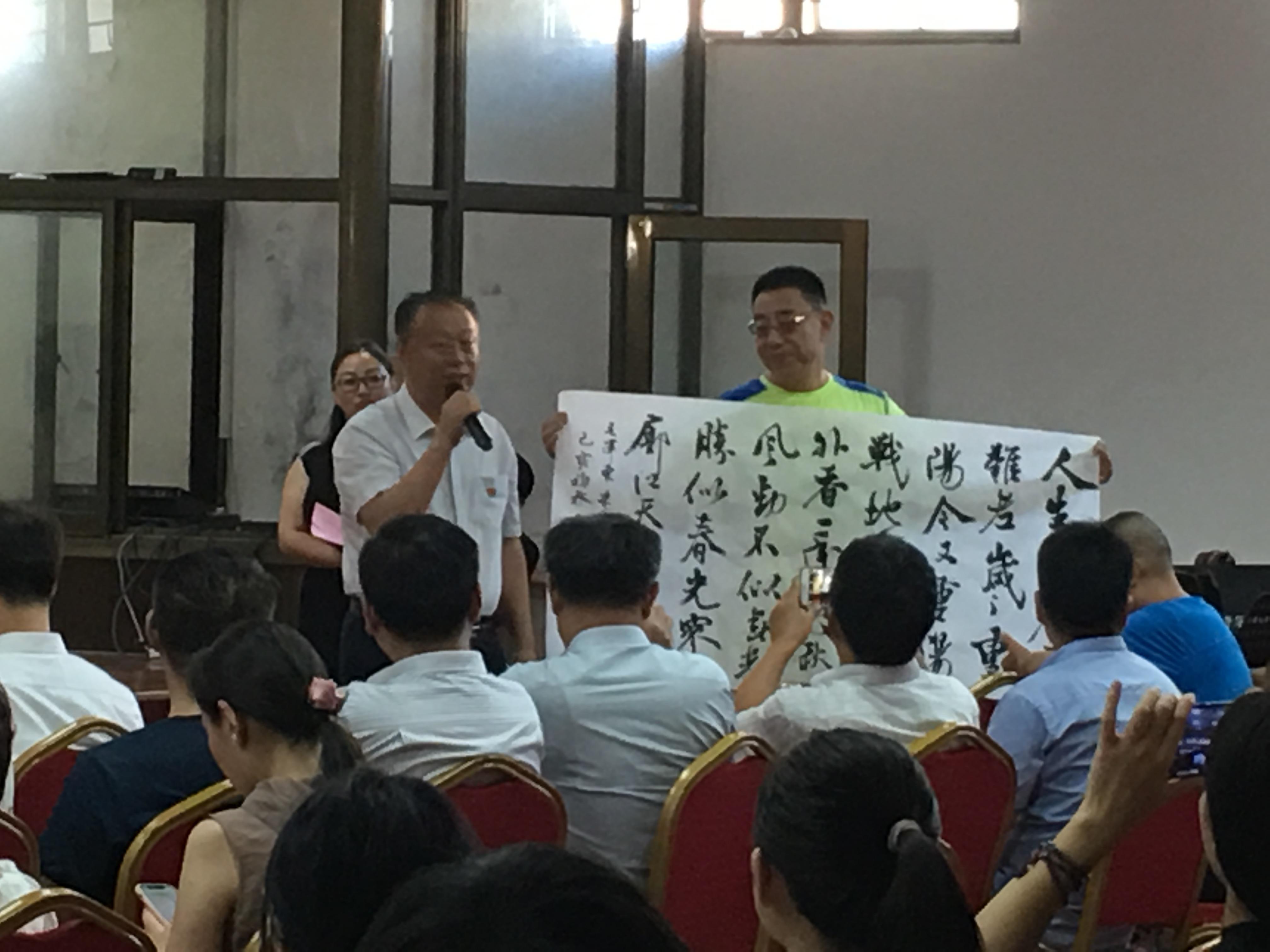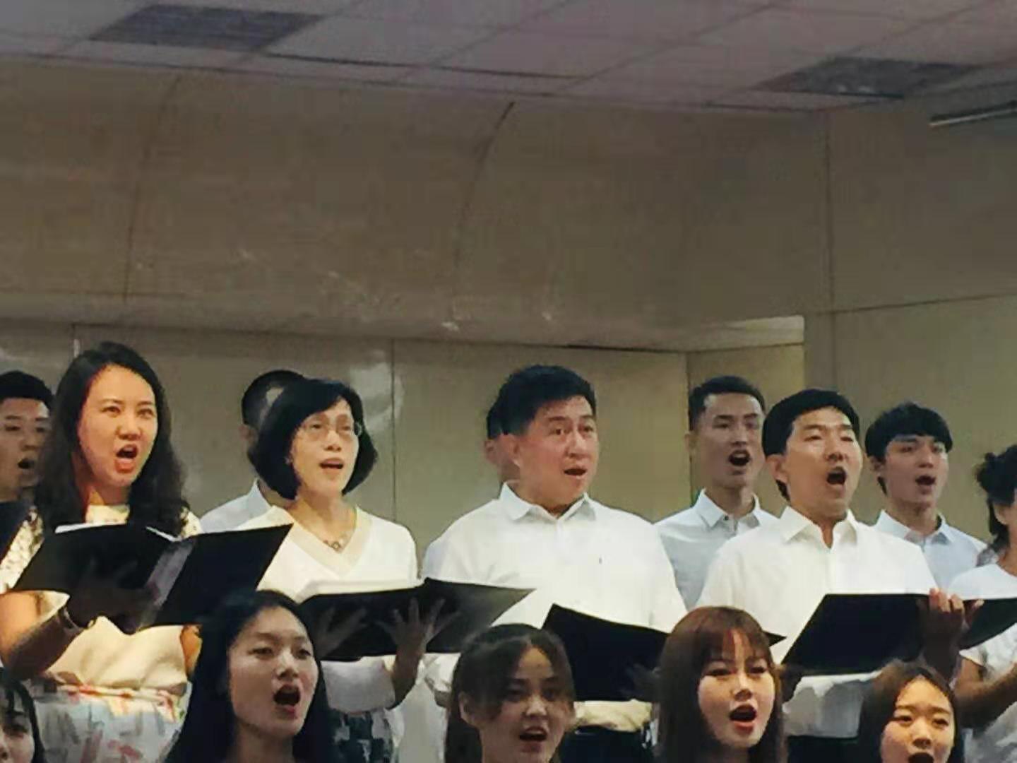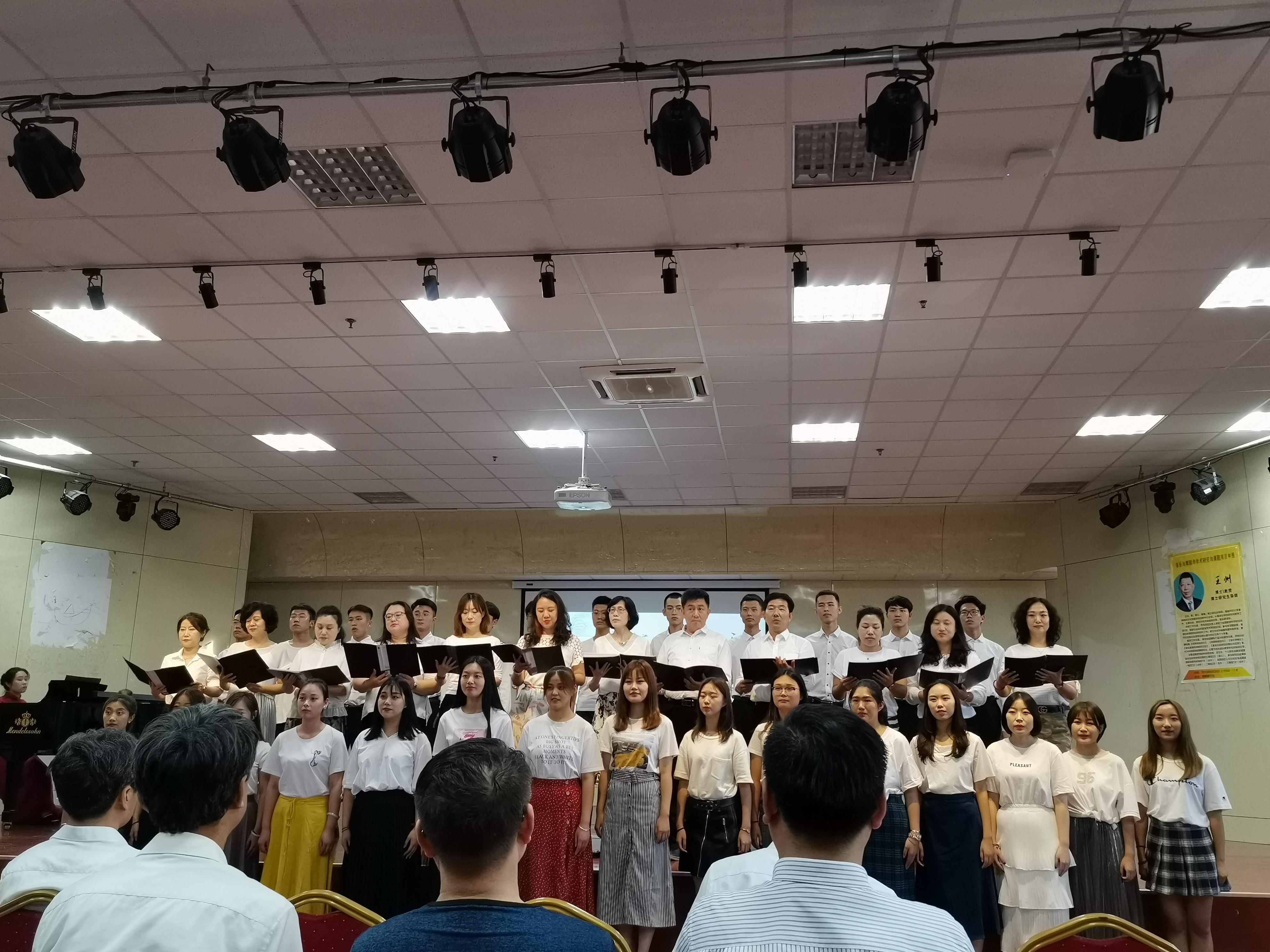专业特长优势,共同完成了九个节目的表演。教工二支部以笙乐器的三重奏《唱支山歌给党听》,拉开了特色党课的序幕,男低音独唱《黄鹤楼》、女声二重唱《卜算子·咏梅》、男高音独唱《七律·长征》、学生党支部的小合唱《娄山关》,在不同音色的对比中,表达出了共产党人的革命乐观主义和坚强不屈的奋斗精神。教工三支部的全体党员同志集体表演了诗词朗诵《长征》《沁园春·雪》,党委书记姜世安以书法形式展示毛泽东诗词作品。最后,教工一支部的全体党员集体大合唱《沁园春·雪》,以气势磅礴的演唱表达了全体党员祝福祖国70华诞、祝愿祖国繁荣昌盛国泰民安的心声。