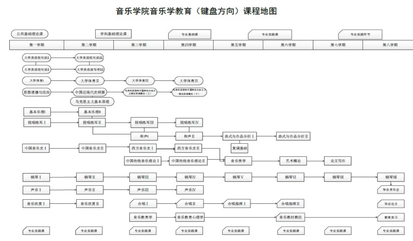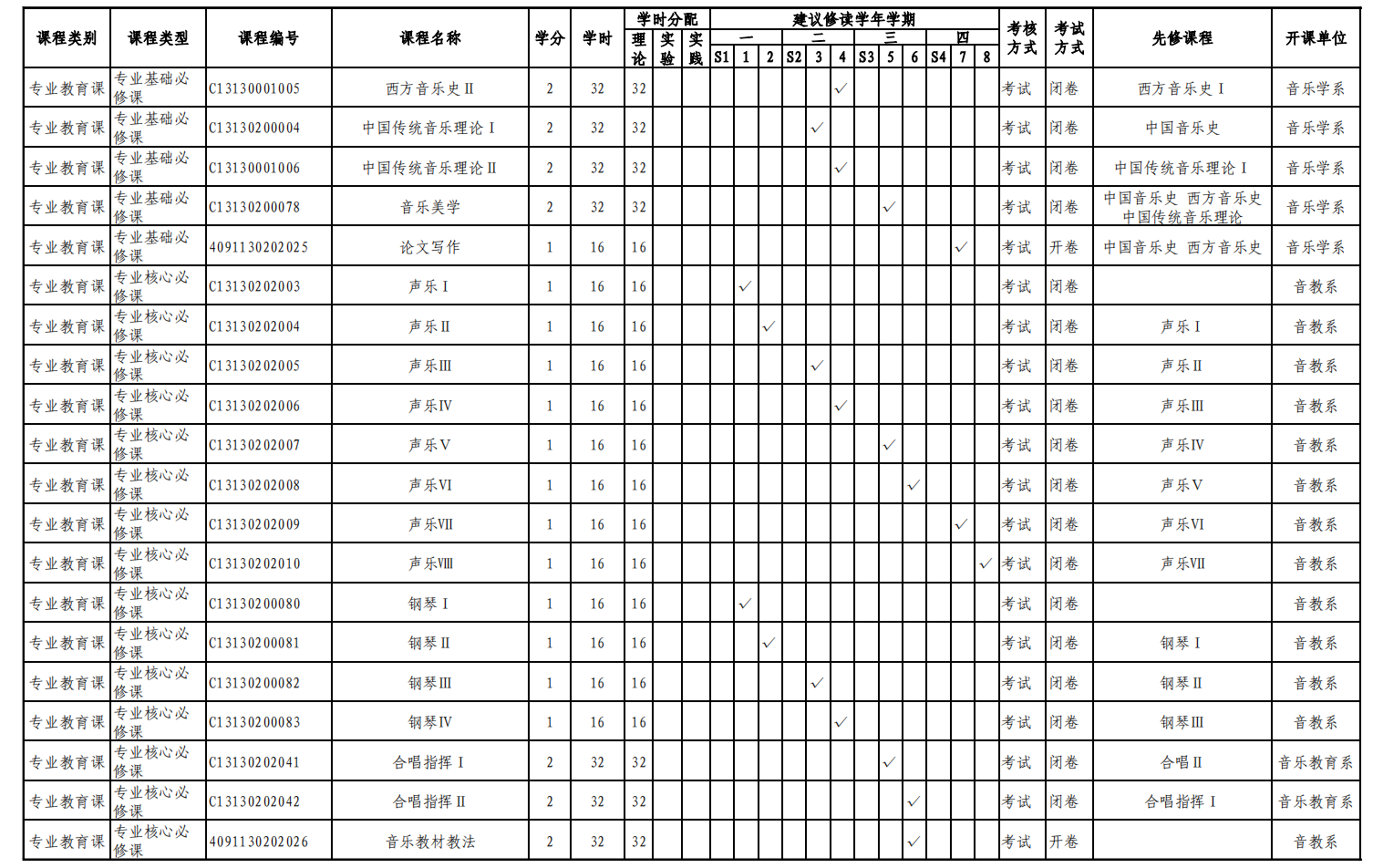 音乐教育方向:钢琴专业课、声乐专业课、音乐教育学、音乐教育心理学、音乐欣赏