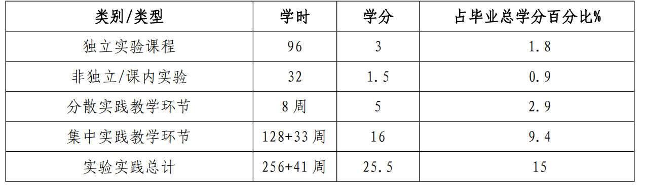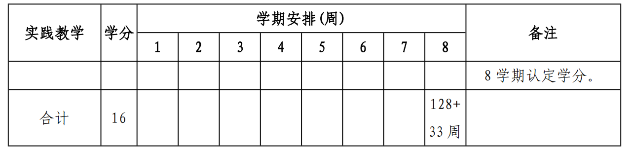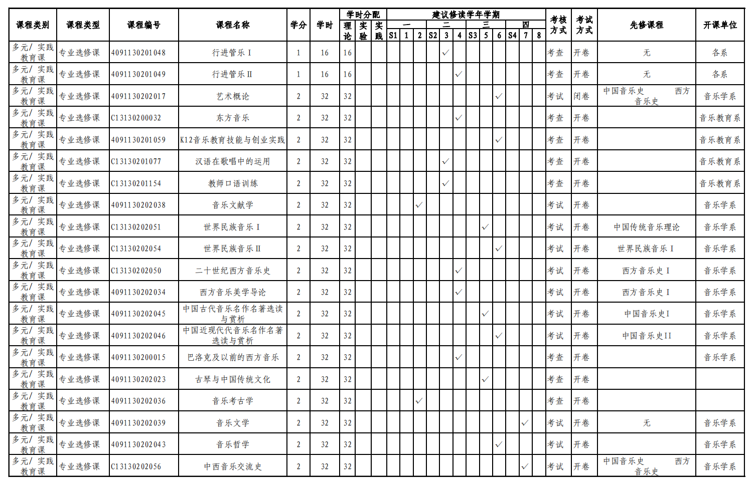 实验实践课学时学分安排表——音乐教育键盘、声乐方向