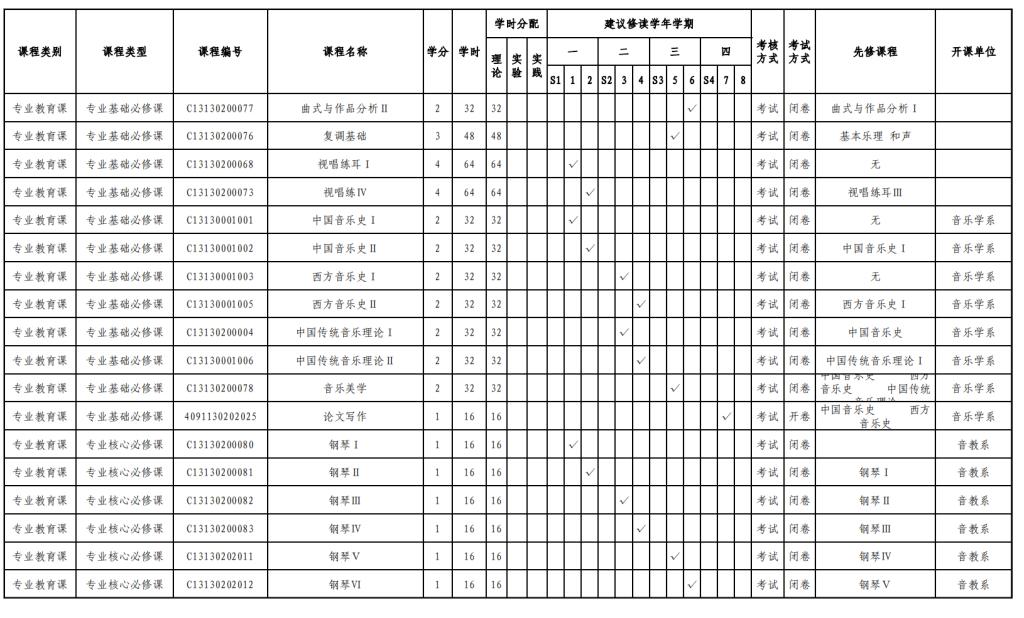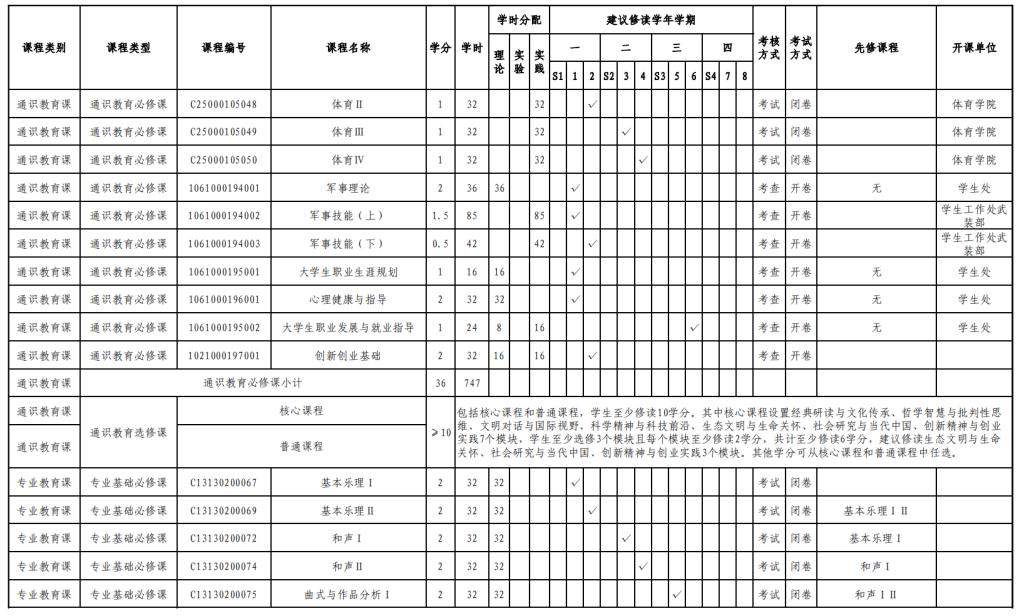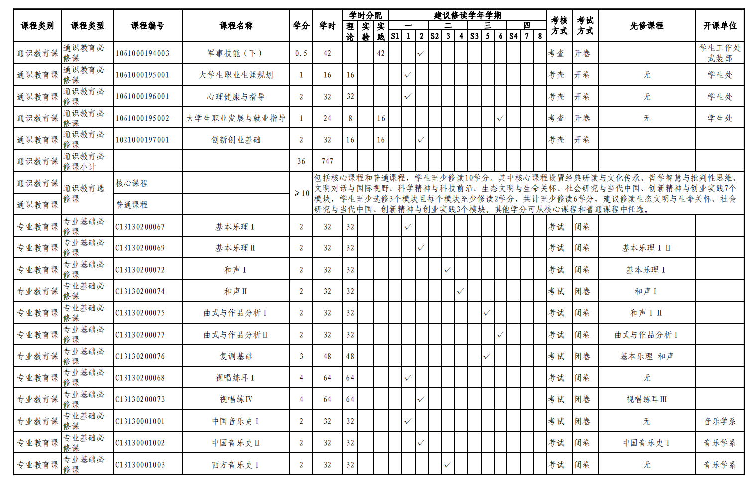 (1)学生在完成规定的必修课程和总学分,其中,视唱练耳达到四级水平,通过本科毕业论文开题报告。