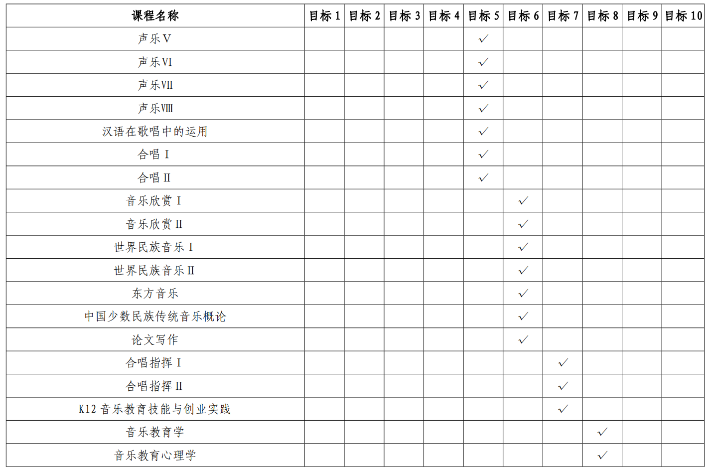 ⑤ 具备较好的声乐演唱能力,掌握正确的发声方法,对歌唱发声的基本原理和方法,有较清楚的理解和认识,掌握现代汉语语音学及传统十三辙在歌唱中的作用及运用方法,具有分析和处理一般声乐作品的能力,具有多种不同风格、不同织体、不同情绪的合唱作品的演唱方法。