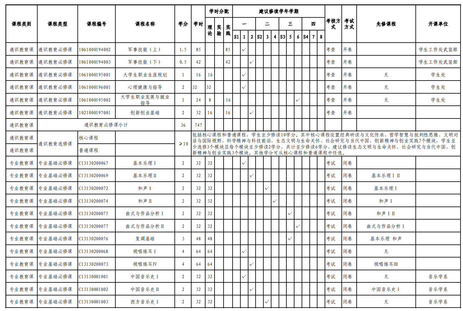 ②具有作曲技术理论基础知识,具有感受音乐的能力及通过听觉分析音乐的能力,使学生系统地理解并掌握音乐表现各要素的理论基础知识和基本技能。并能够结合自身专业,对音乐作品进行全面分析与理解。