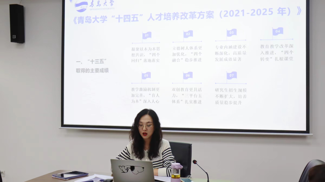 各系主任针对本系的工作分别从2018年第三次党代会以来取得的成绩,存在的问题、短板以及本系落实《青岛大学十四五人才培养改革方案》的措施等方面进行了发言汇报。